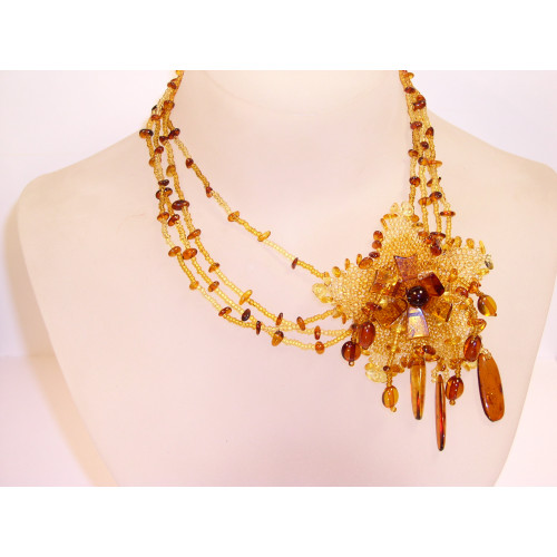 Состав: янтарь, бисер. Длина колье – 45 см. Под заказ длина может быть любой. В случае отсутствия товара на складе срок изготовления и поставки от 3 недель.