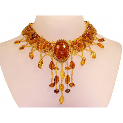 Колье из природного янтаря с бисером 10185