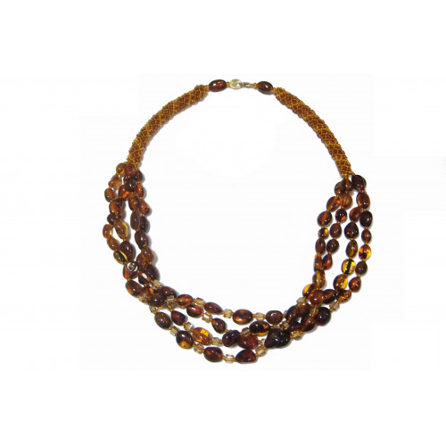 Состав: янтарь, бисер. Длина колье – 45 см. Под заказ длина может быть любой. В случае отсутствия товара на складе срок изготовления и поставки от 3 недель.