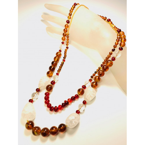 Состав: янтарь, бисер, горный хрусталь. Длина колье - 50 см. Под заказ длина может быть любой. Оттенок изделия может не совпадать с оттенком на фото. В случае отсутствия товара на складе срок изготовления - от 2 недель.