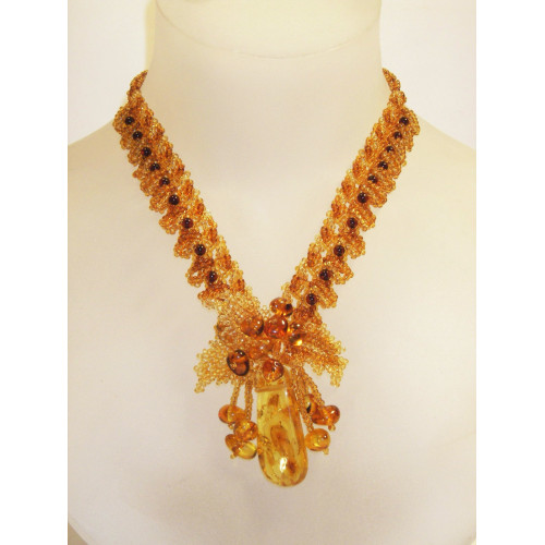 Состав: янтарь, бисер. Длина колье – 45 см. Под заказ длина может быть любой. В случае отсутствия товара на складе срок изготовления и поставки от 3 недель.