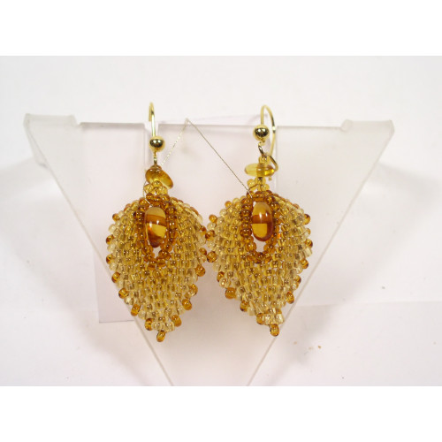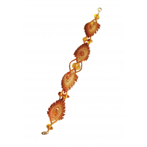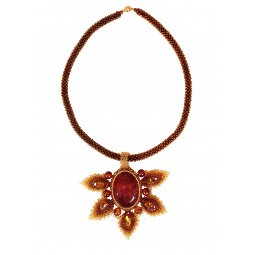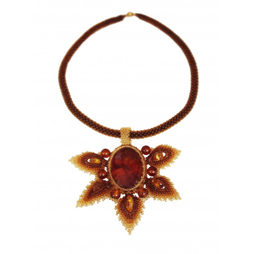 Колье с цветком из янтаря коньячного цвета с бисером 11031-2