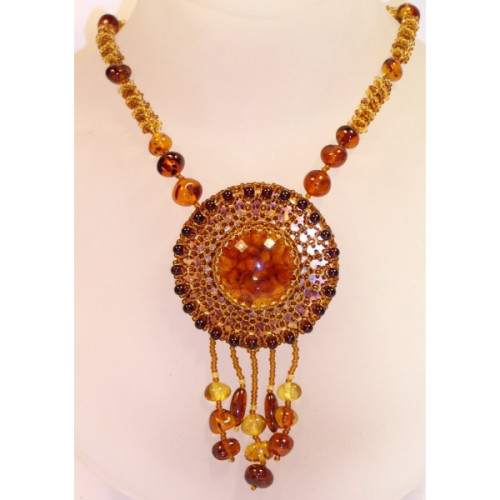 Колье в этническом стиле из натурального янтаря с бисером 30036