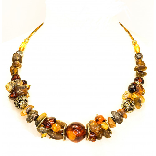 Колье в этническом стиле из янтаря, бисера и металлических вставок 11172