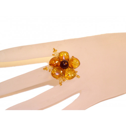 Кольцо из балтийского янтаря с бисером в форме цветка 50011