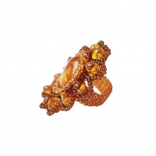 Состав: янтарь, бисер. Оттенок изделия может отличаться от оттенка на фото. По желанию кольцо можно комплектовать с кулоном арт. 30906, серьгами арт. 40844 и браслетом 20929. В случае отсутствия товара на складе, срок изготовления - от 3 недель.