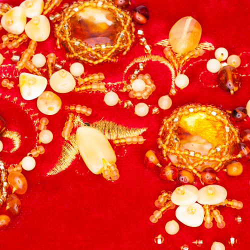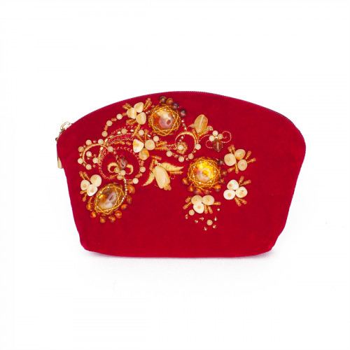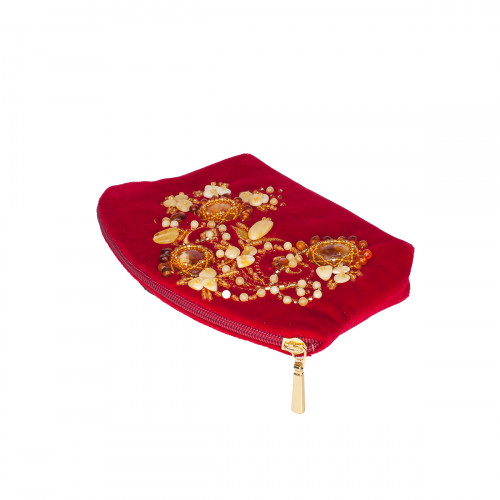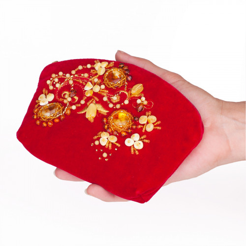 Косметичка бархатная расшитая золотой нитью и янтарем 1000