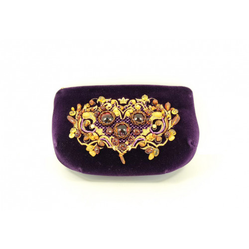 Косметичка бархатная расшитая золотой нитью и янтарем 1015
