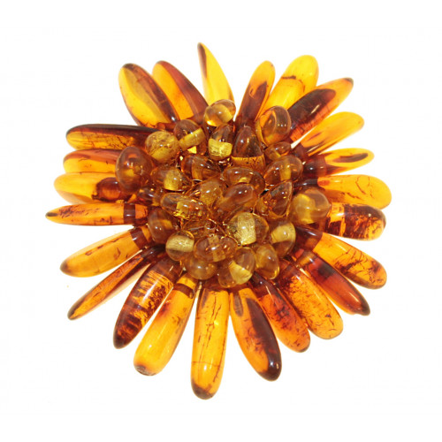 • Красивая брошь в виде цветка из натурального янтаря и бисера 60804
