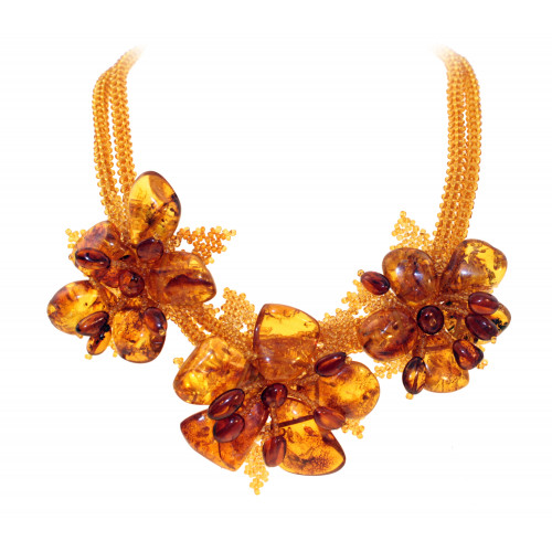 Красивое колье из балтийского янтаря с цветами 10952-1