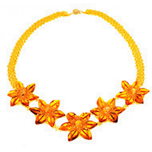 Красивое колье из натурального янтаря и бисера с цветами 10006
