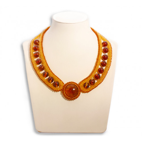 Красивое широкое колье из янтаря с бисером 11117