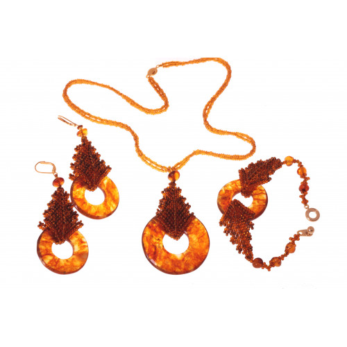 Красивый комплект из балтийского янтаря 3-10023e, 3-10023p, 3-10023b