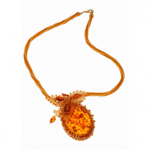 Красивый кулон из балтийского янтаря и бисера 30837