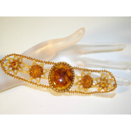 Красивый легкий браслет из бисера и светлого янтаря 20449