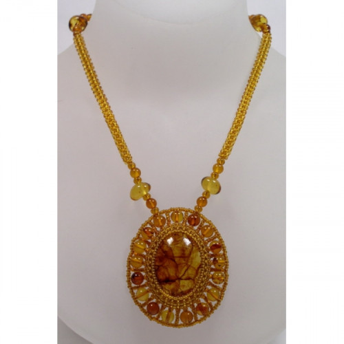 Красивый овальный кулон из балтийского янтаря и бисера 30134