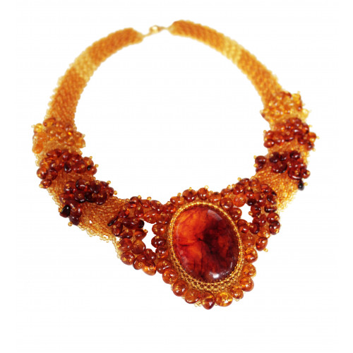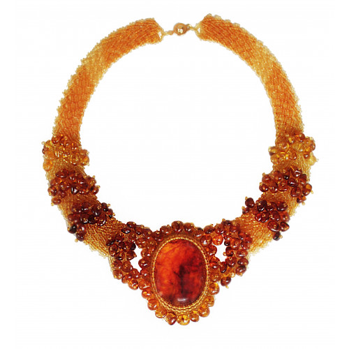 Крупное колье из бисера двух цветов со вставкой из цельного янтаря 10971n