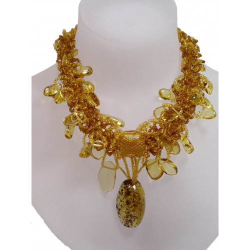 Крупное колье из натурального янтаря и бисера 10532