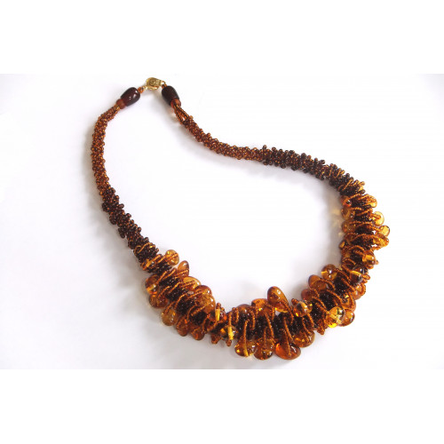 Состав: янтарь, бисер. Длина колье – 45 см. Под заказ длина может быть любой. В случае отсутствия товара на складе срок изготовления и поставки от 3 недель.