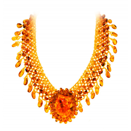 Крупное нарядное колье из балтийского янтаря и бисера 11005