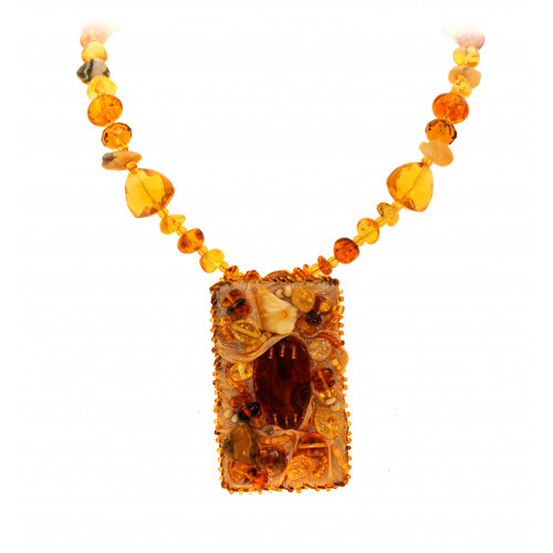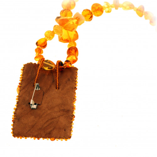 Кулон-брошь из балтийского янтаря и бисера 30876
