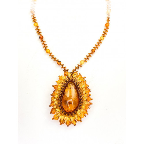 Кулон из бисера и натурального янтаря 30943