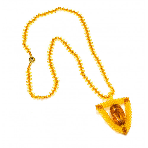 Кулон из бисера и натурального янтаря 30946