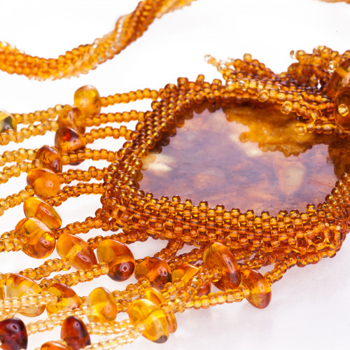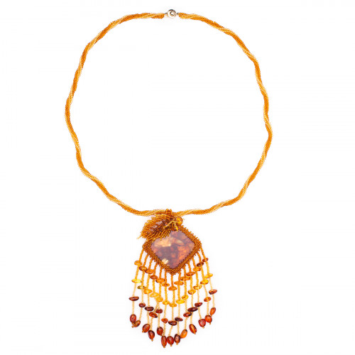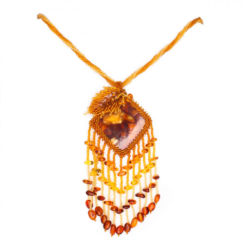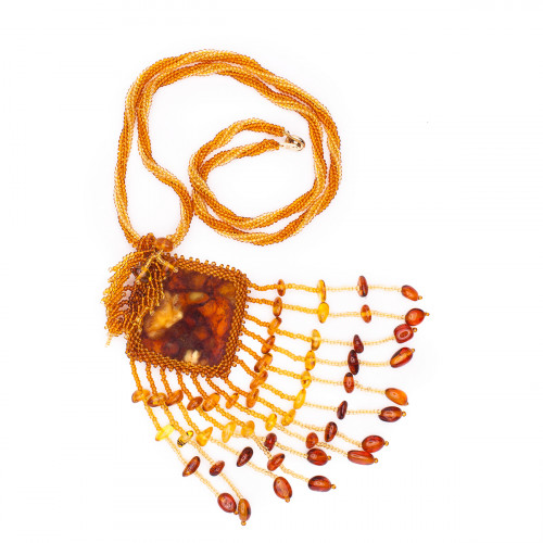 Кулон из натурального янтаря и бисера 30916