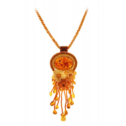 Состав: янтарь, бисер. Длина кулона – 50-55 см. Под заказ длина может быть любой. В случае отсутствия товара на складе срок изготовления и поставки от 3 недель.