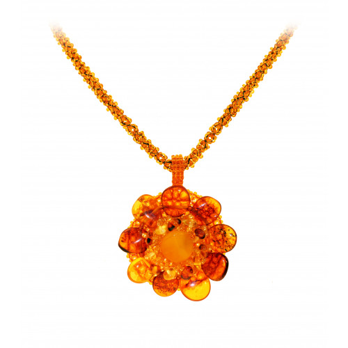 Кулон-цветок из балтийского янтаря с бисером 30857