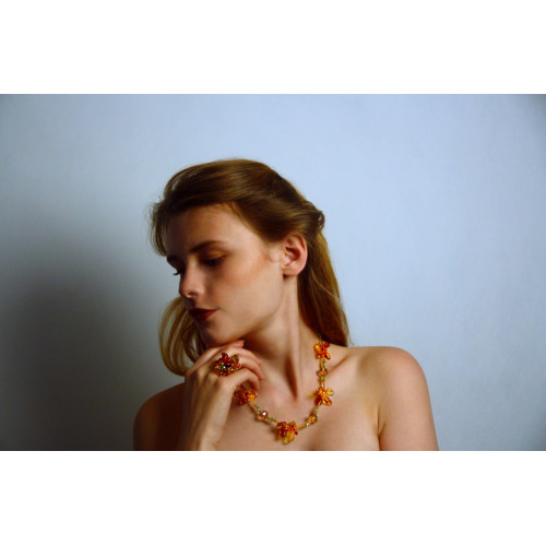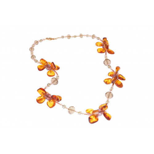 Легкое колье из натурального янтаря бисера и стекла 10899-1
