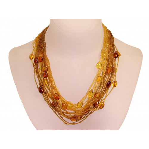 Состав: янтарь, бисер. Длина колье – 45 см. Под заказ длина может быть любой. По желанию может комплектоваться браслетом арт. 11018b. Цена браслета - 2592 руб. В случае отсутствия товара на складе срок изготовления и поставки от 3 недель.