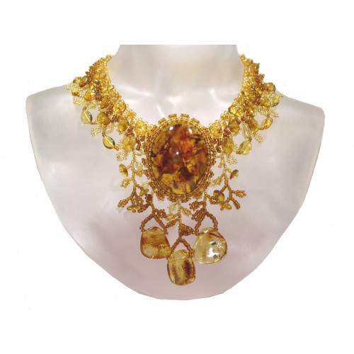 Состав: янтарь, бисер. Длина колье – 45 см. Под заказ длина может быть любой. В случае отсутствия товара на складе срок изготовления и поставки от 3 недель.