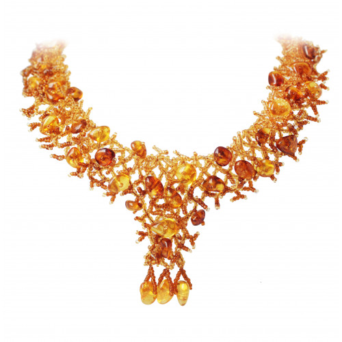 Состав: янтарь, бисер. Длина колье – 45 см. Под заказ длина может быть любой. В случае отсутствия товара на складе срок изготовления и поставки от 3 недель.