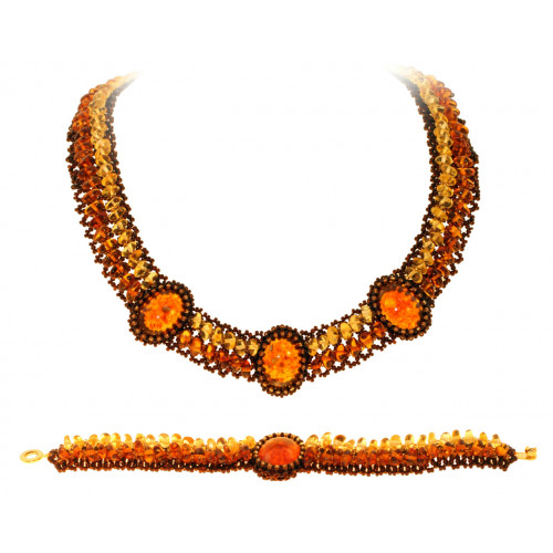Нарядный комплект из натурального балтийского янтаря: колье браслет. 11009-1 20901-1