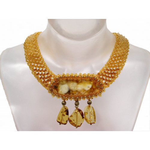 Необычное колье из балтийского янтаря и бисера 10105