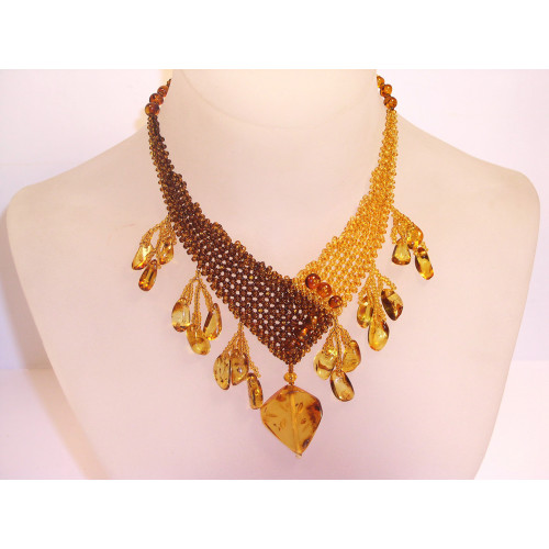 Необычное колье из балтийского янтаря и бисера 10269