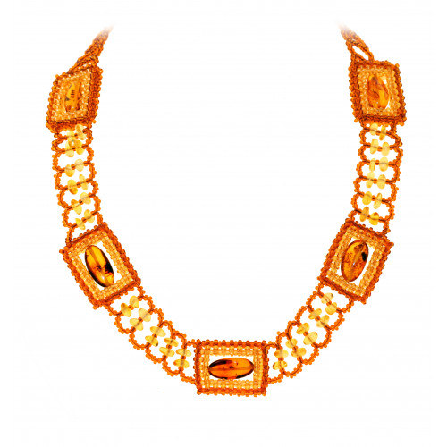 Состав: янтарь, бисер. Длина колье – 45 см. Под заказ длина может быть любой. По желанию может комплектоваться с браслетом 20903. В случае отсутствия товара на складе срок изготовления и поставки от 3 недель.