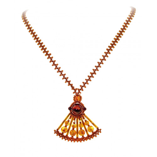 Необычный кулон из балтийского янтаря и бисера 30806-1