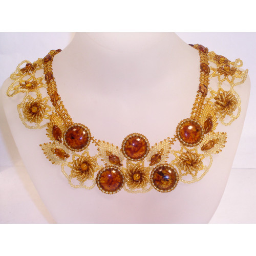 Нежное колье из натурального янтаря и бисера 10310