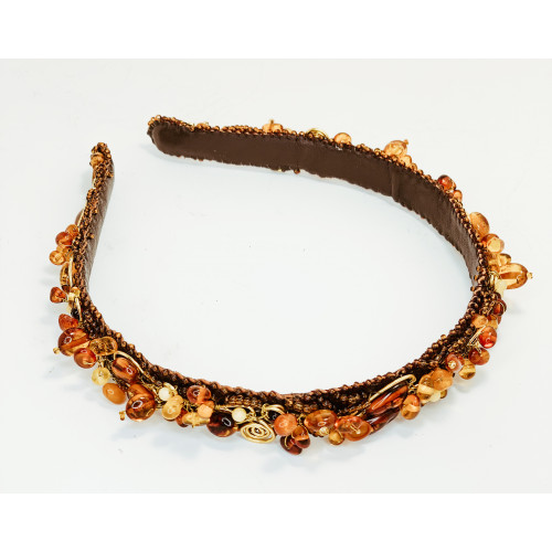 Ободок для волос из янтаря бисера и натуральной кожи 127