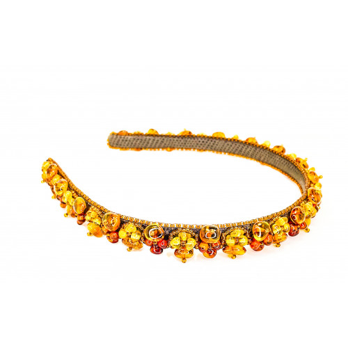 Ободок для волос из янтаря бисера и натуральной кожи 133