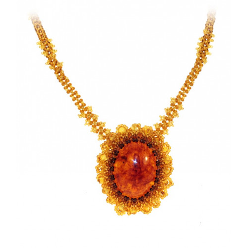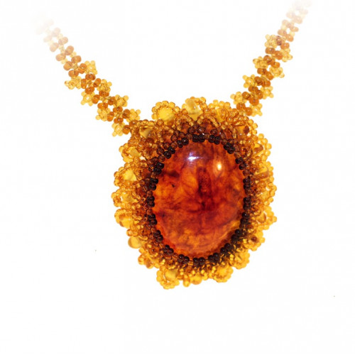 Овальный кулон из балтийского янтаря с бисером 30879