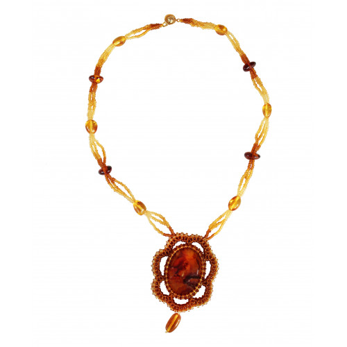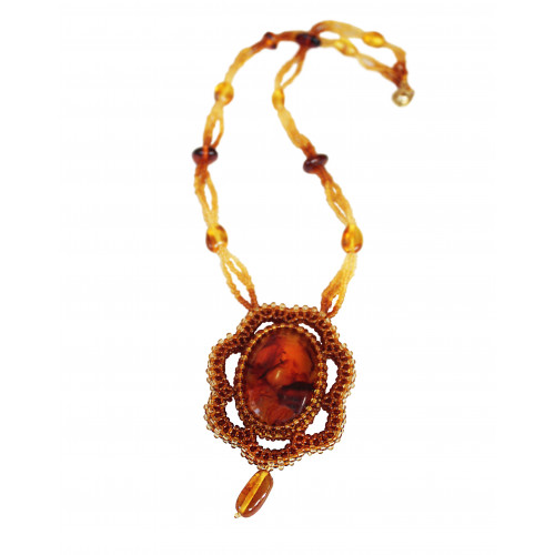 Состав: янтарь, бисер. Длина кулона – 50-55 см. Под заказ длина может быть любой. В случае отсутствия товара на складе срок изготовления и поставки от 3 недель.