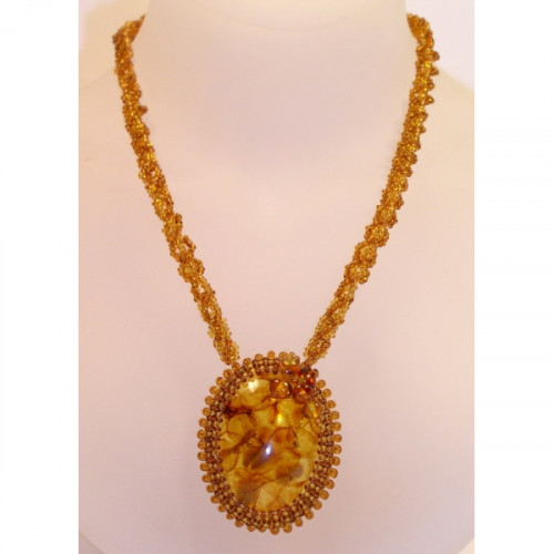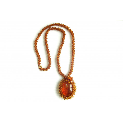 Овальный кулон из натурального янтаря с бисером 30135