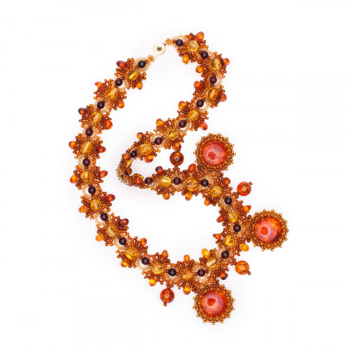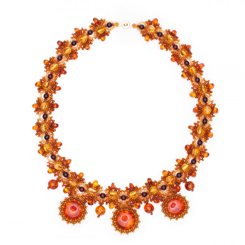 Ожерелье из натурального янтаря и бисера 11057-2