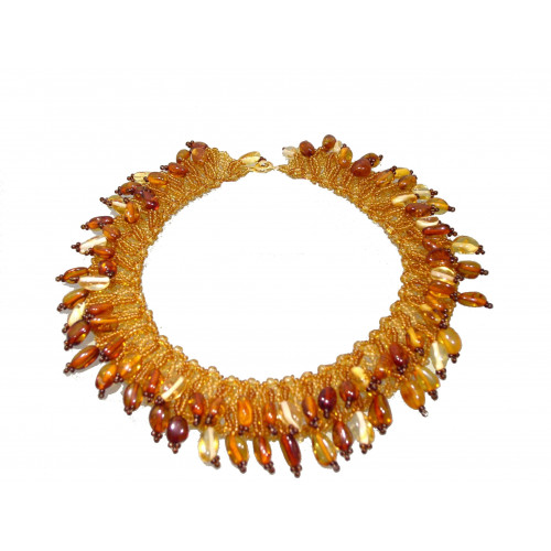 Ожерелье из натурального янтаря с бисером 10399