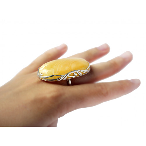 Перстень из натурального янтаря с серебром 200-17,7