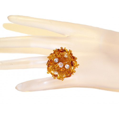 Плетеное кольцо из балтийского янтаря и бисера 50001