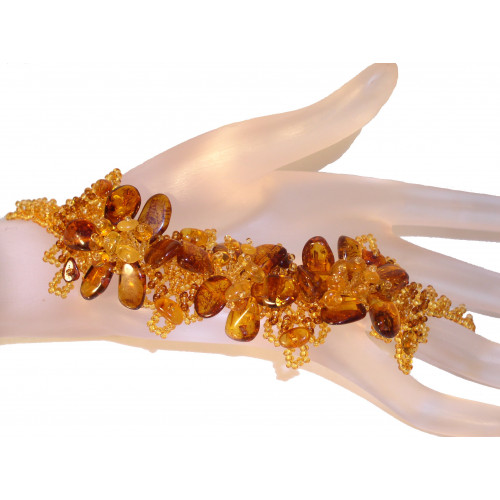 Плетеный браслет из бисера и балтийского янтаря 10244b